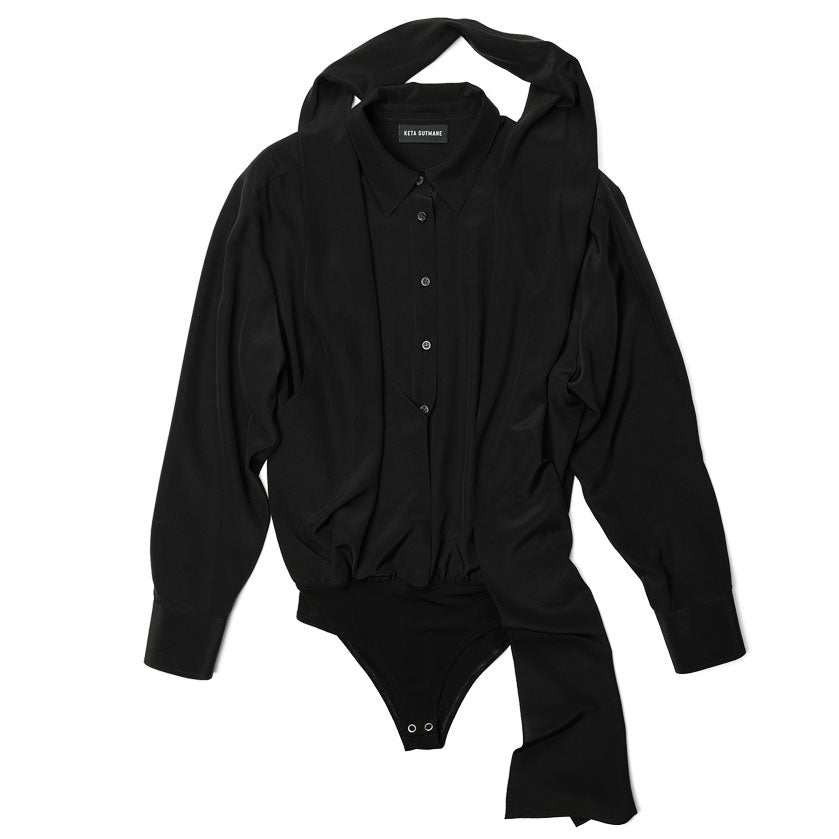 Black Bodysuit Blouse with Scarf