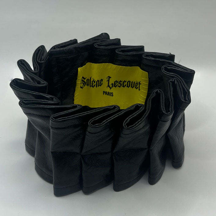 Faux leather choker with an 8 cm height, featuring adjustable snap closures at the back. Crafted from sustainable end-of-stock fabrics and made in Paris. The interior and exterior are finished in quality leatherette, with a branded label inside for authenticity.
