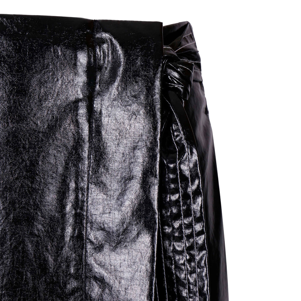 Black shiny skirt fabric: 45% Cotton, 55% Coating. Lining: 100% Cotton