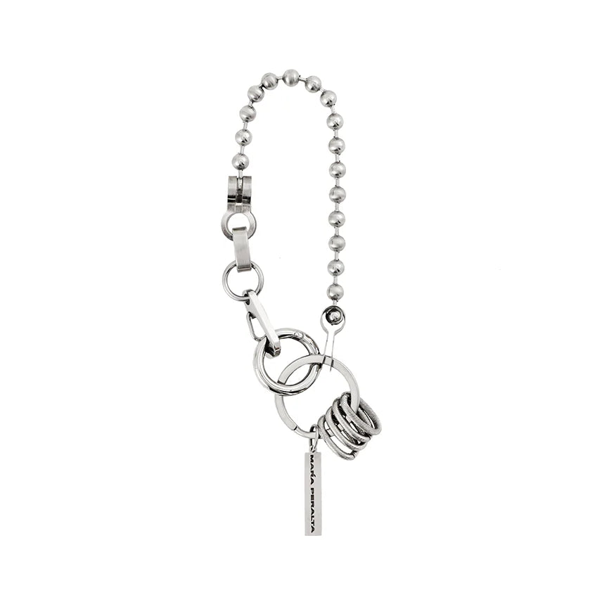 Ball chain key loop, a utilitarian take of an everyday keychain with polished split rings and snap clasp.