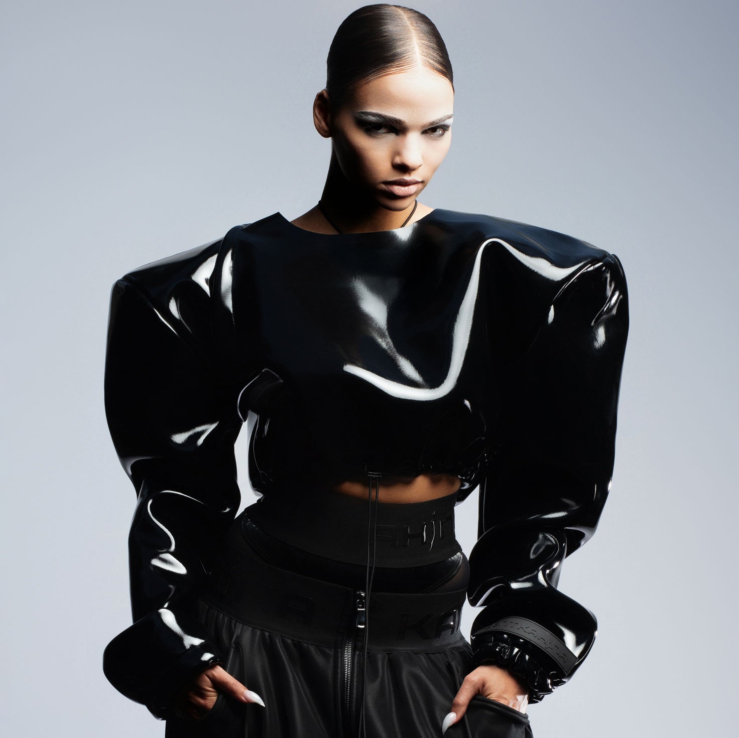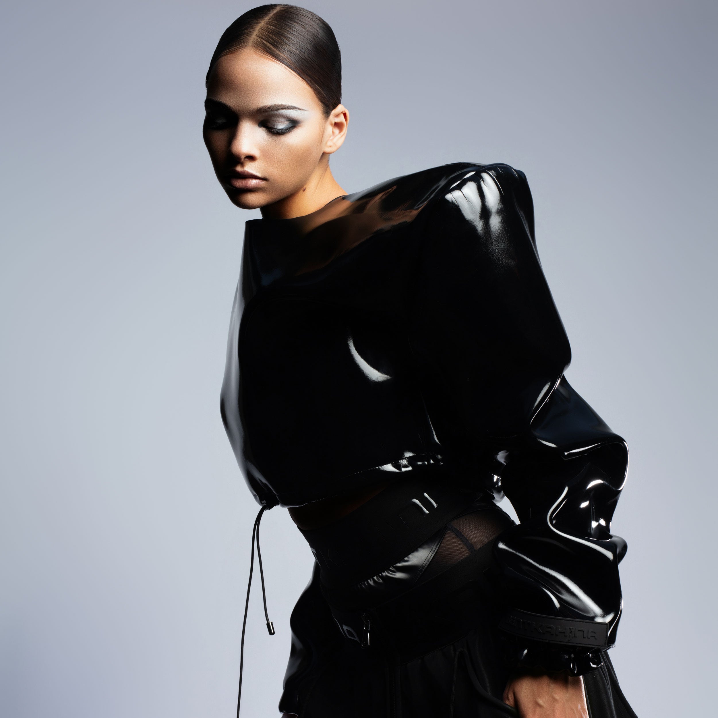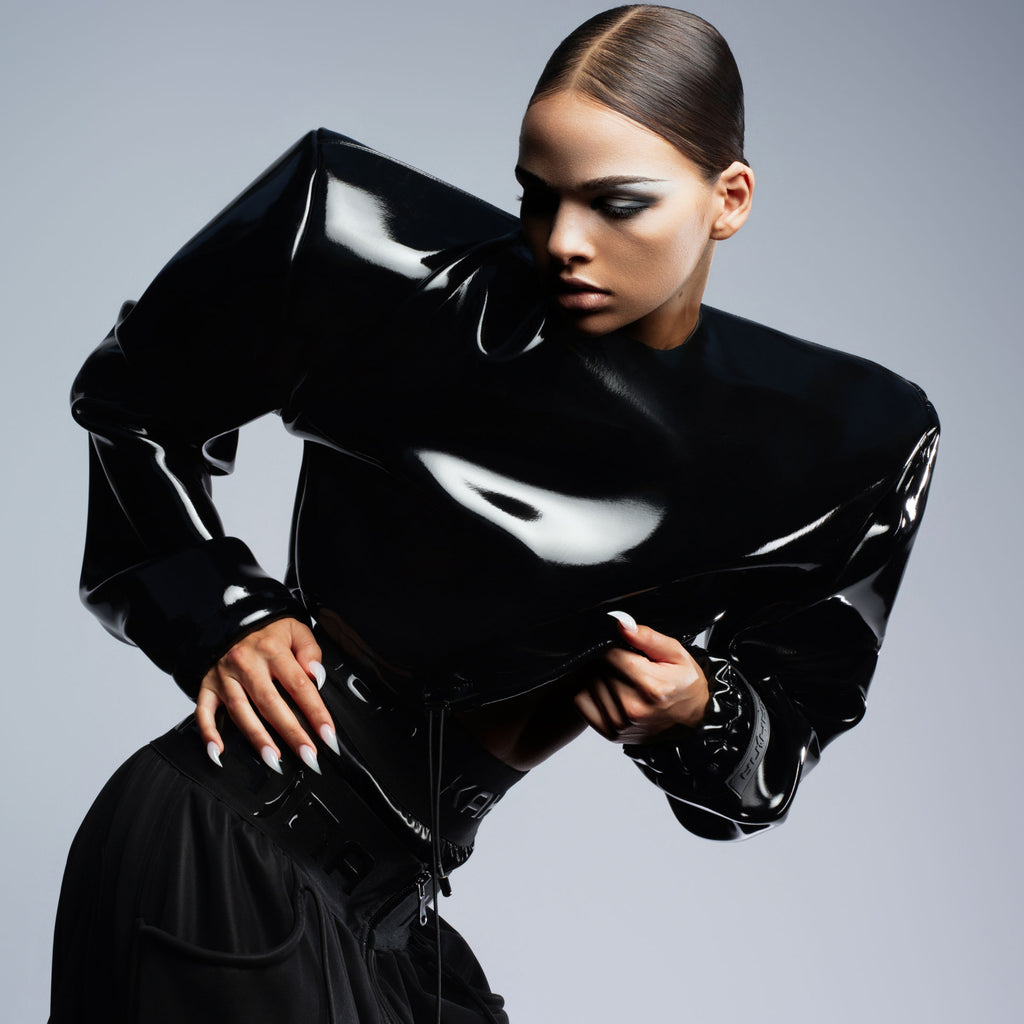High Gloss Black Oversized Shoulder Top