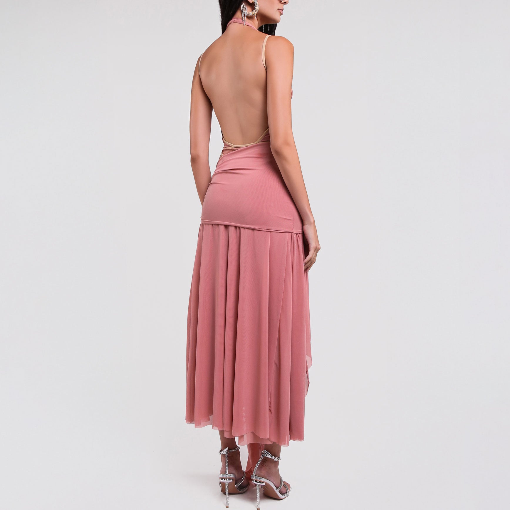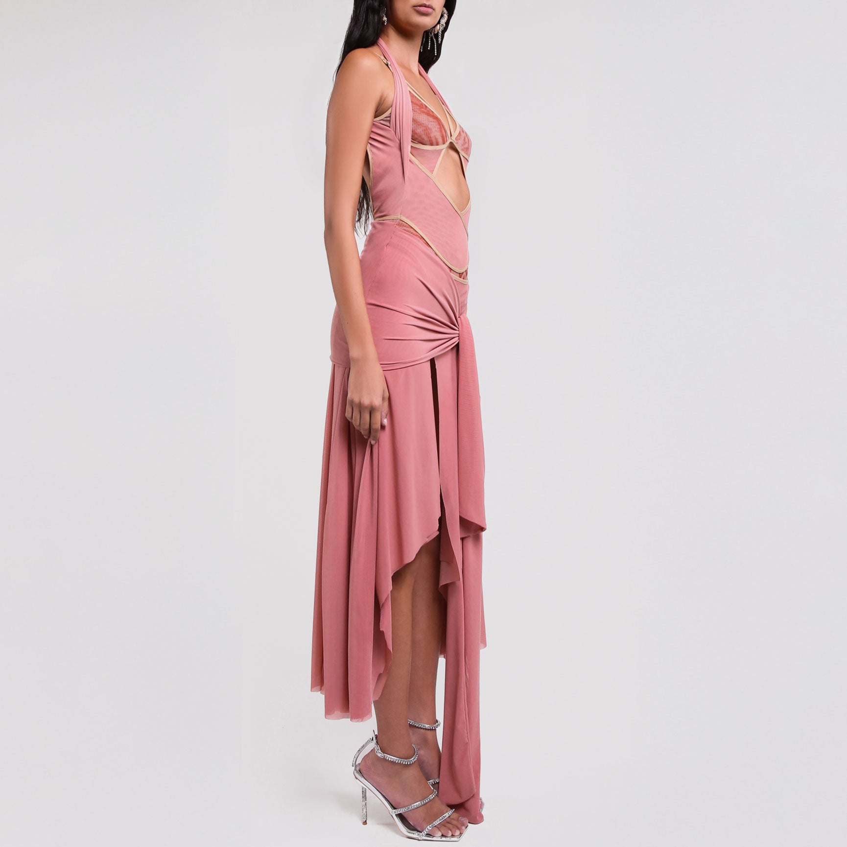 Peach & Animal Bodysuit Dress. A cohesive one-piece combining a fitted bodysuit with an attached skirt for a complete dress silhouette. Patchwork construction with subtle animal print detailing creates visual depth while maintaining wearability and comfort.