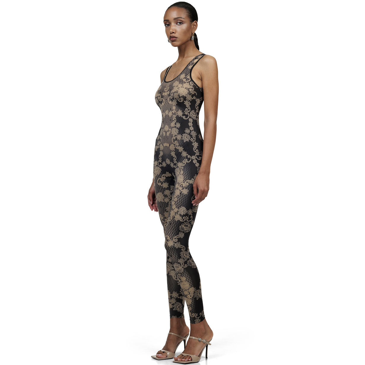 This tank top jumpsuit hugs your silhouette with delicate floral lace layers, creating a feminine and elegant look.