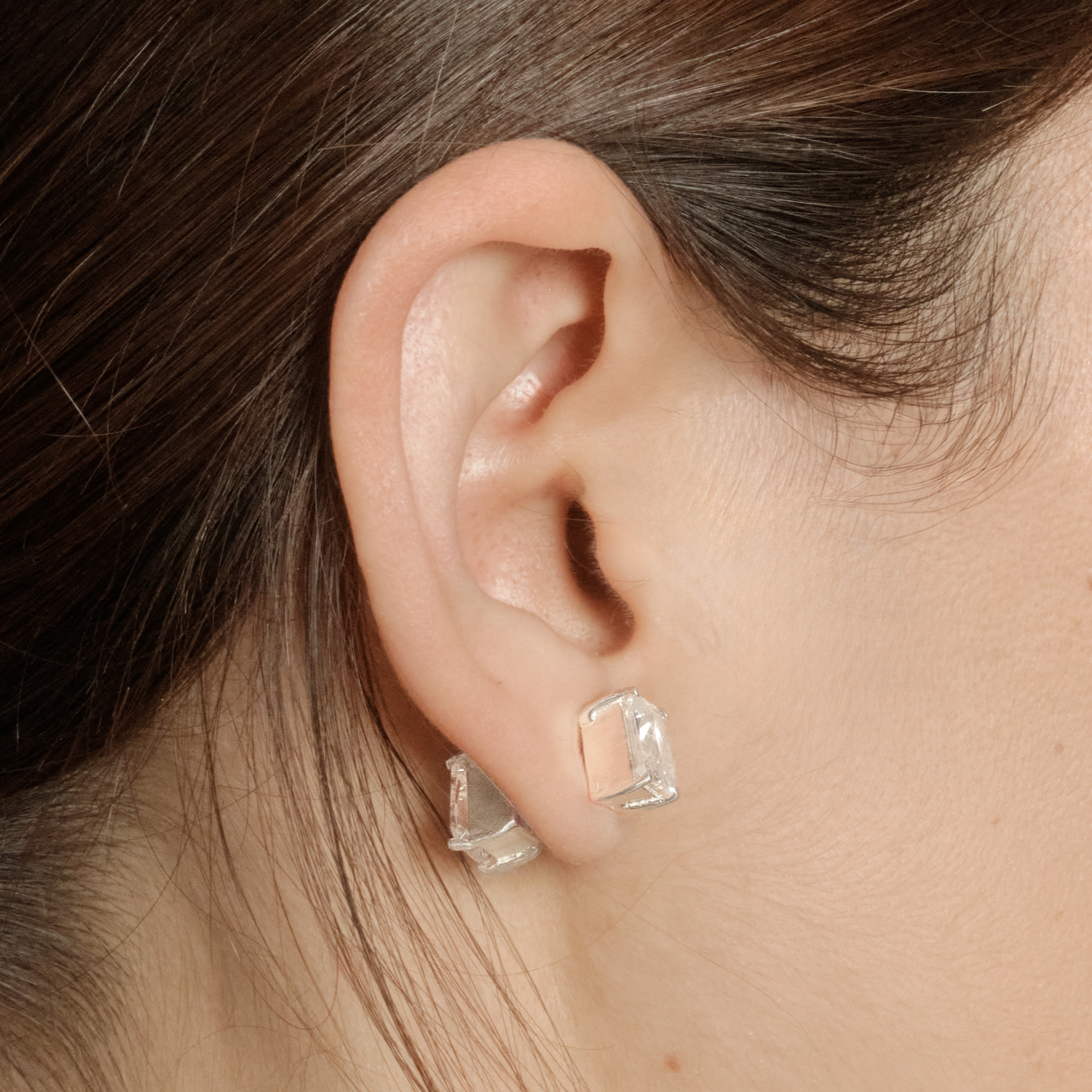 Duo Facetté Studs are double-sided silver stud earrings with small faceted