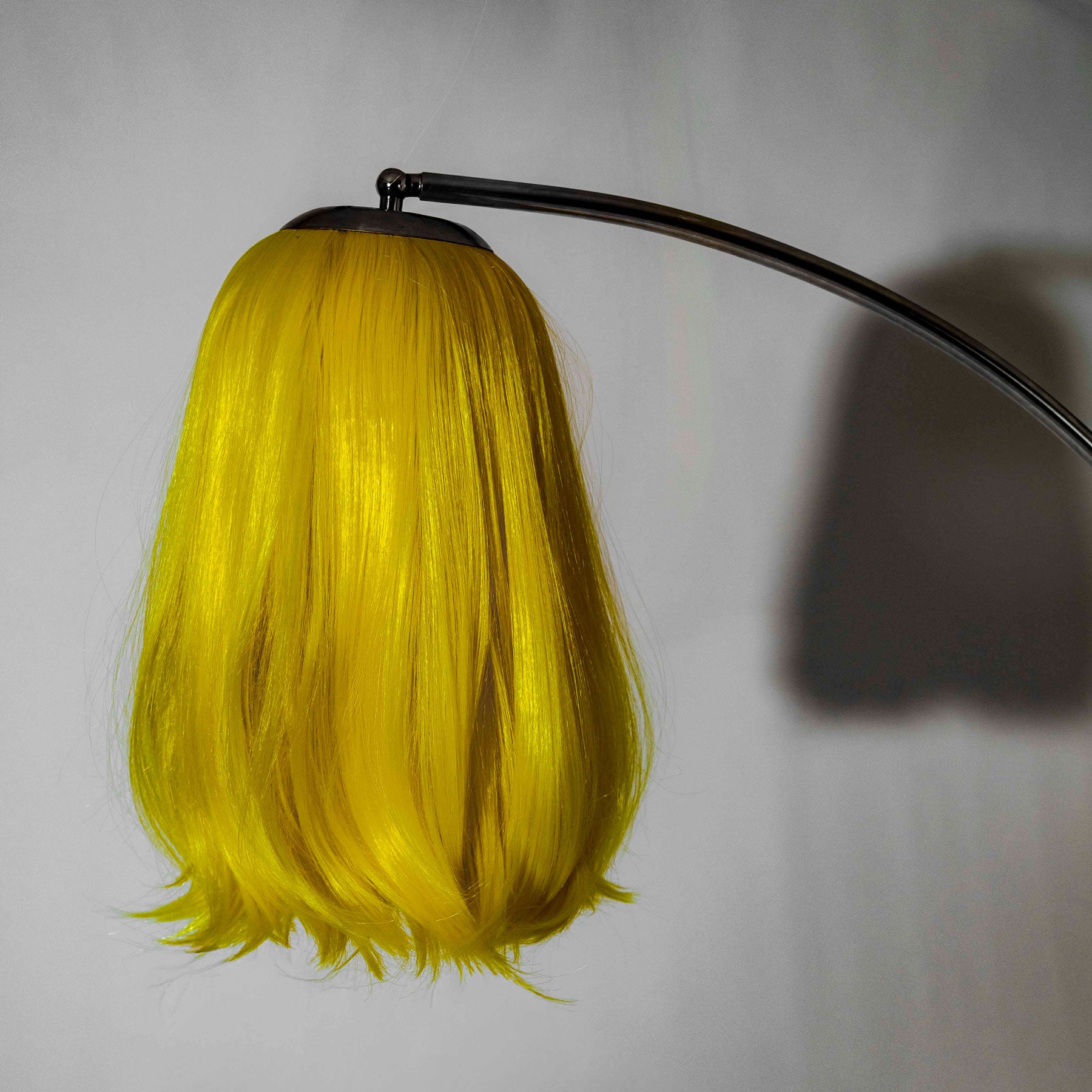 Inner lampshade measurements: 15 cm diameter and 15 cm height. hair length 120 cm.