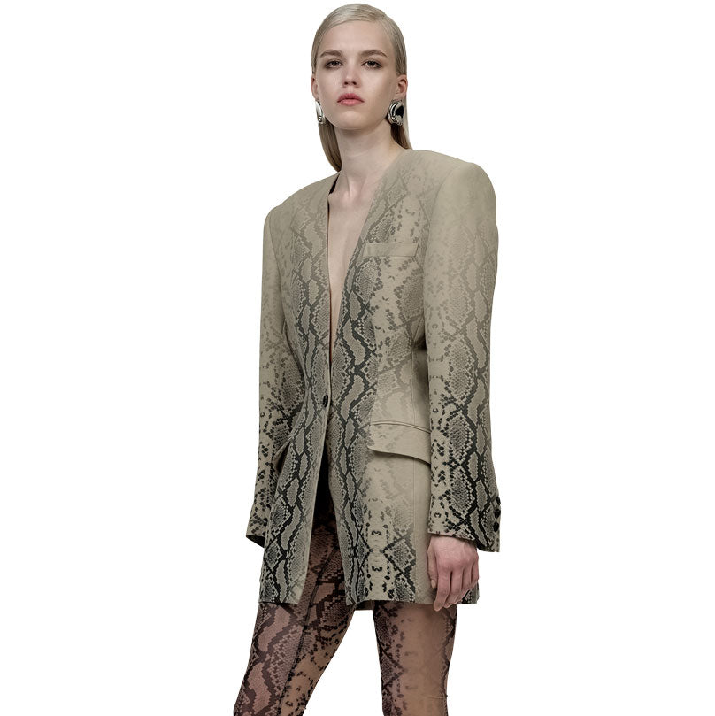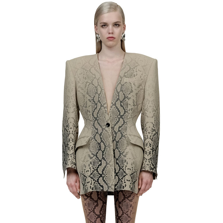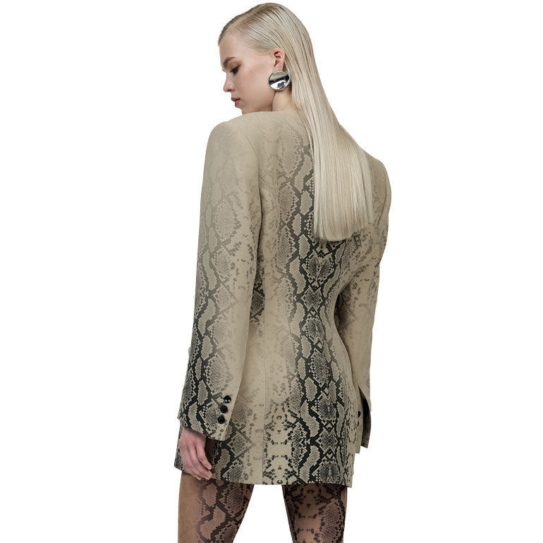 V-neck Python Print Hourglass Blazer. The print effect is fading. Single-breasted blazer with a one-button front.