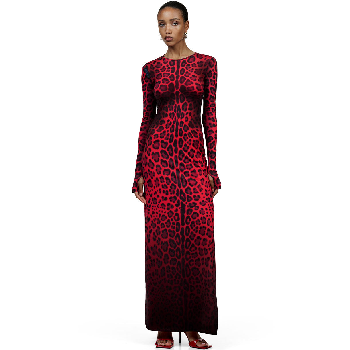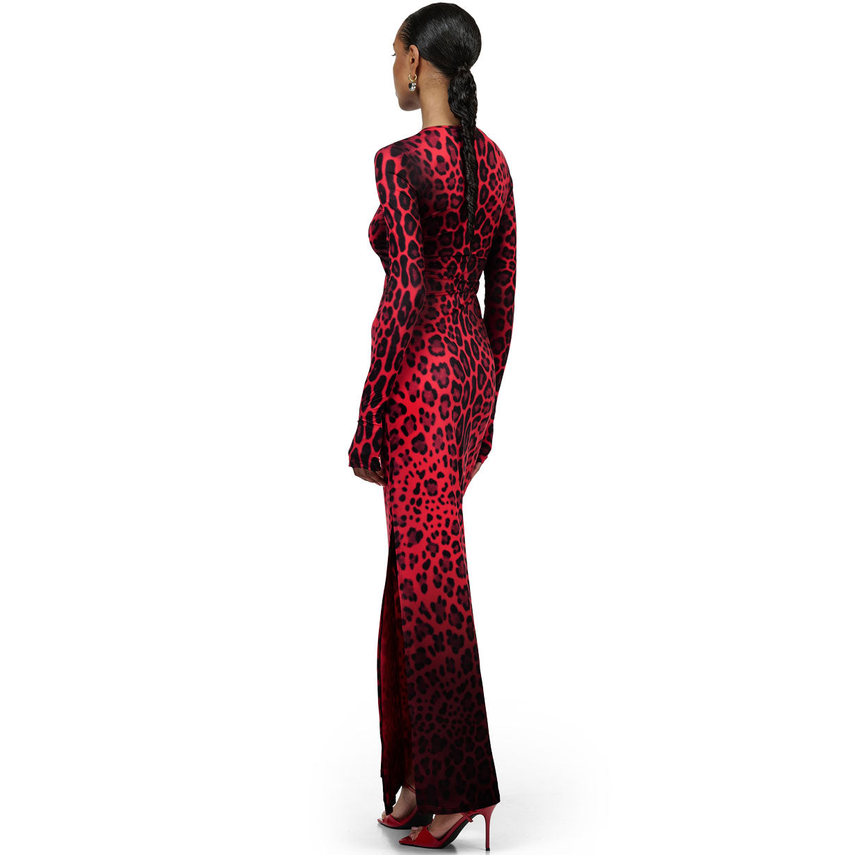 This slim-fit maxi dress from the Wild Animal series features an all-over leopard print that flows with the body’s natural lines, creating a striking, dynamic silhouette. Slit on the side.