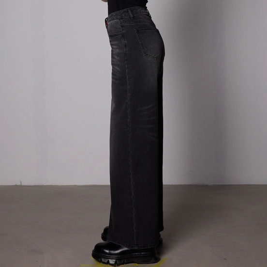 Our widest fit with maximum volume from hip to hem. Designed for a bold, oversized silhouette. Sits comfortably at the waist with a relaxed seat and an exaggerated wide leg.