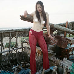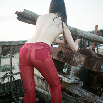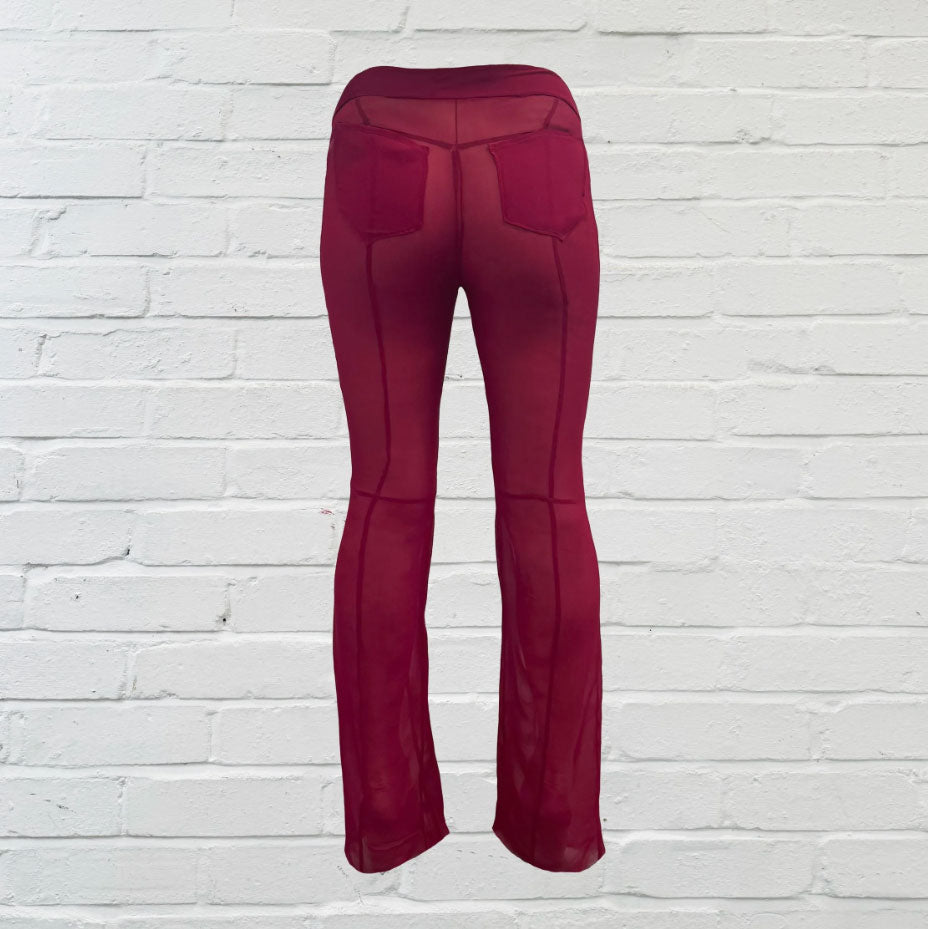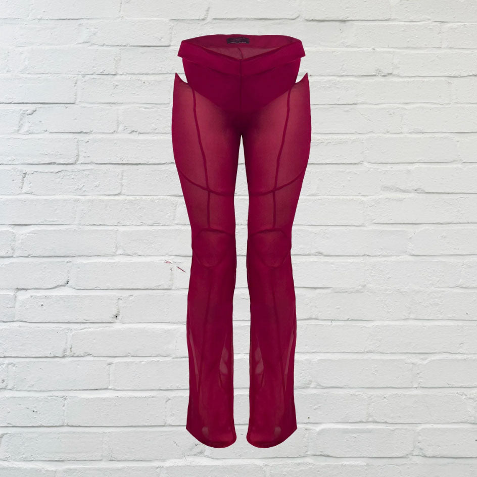 Red Sheer Silk Cutout Trousers