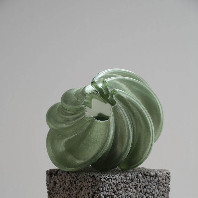 3D-printed slowly, on purpose, in our Stockholm studio, each lamp takes 16 hours to form — merging digital precision with textile softness.