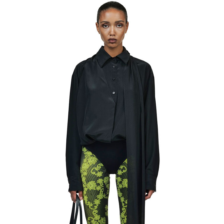 Black Bodysuit Blouse with Scarf