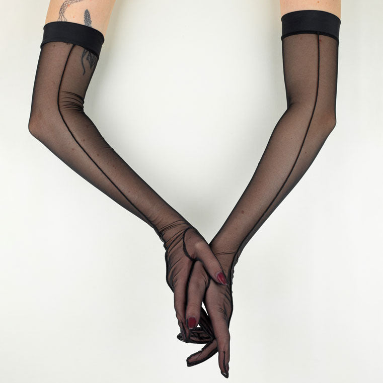 Introducing the Miranda gloves – an homage to vintage glamour with a modern twist. Inspired by fully fashioned stockings, these mesh gloves boast a chic seam running over the top of the hand. The finishing touch comes in the form of a sophisticated black elasticated border at the top, adding a touch of timeless elegance to this uniquely designed accessory.