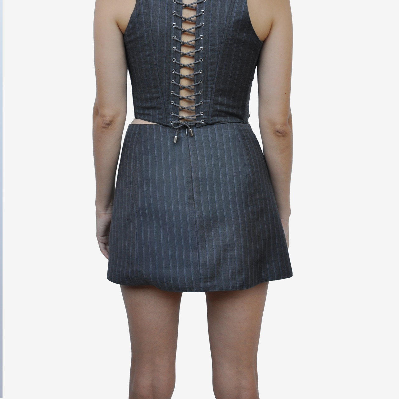Crafted from woll flanelle, this mini skirt combines structure with a soft hand feel. Lace-up details along the sides allow for an adjustable fit and add a refined, modern edge. Finished with a clean waistband and subtle stitching for a sculpted silhouette.