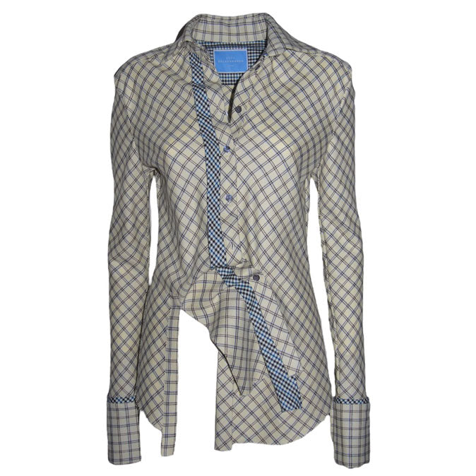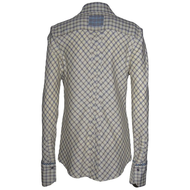 100% cotton shirt, big round cuffs, classic and twisted closure, natural mother of pearl buttons.