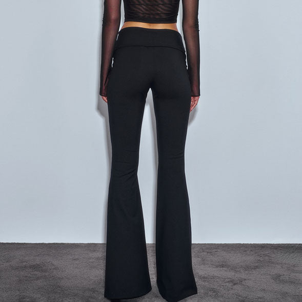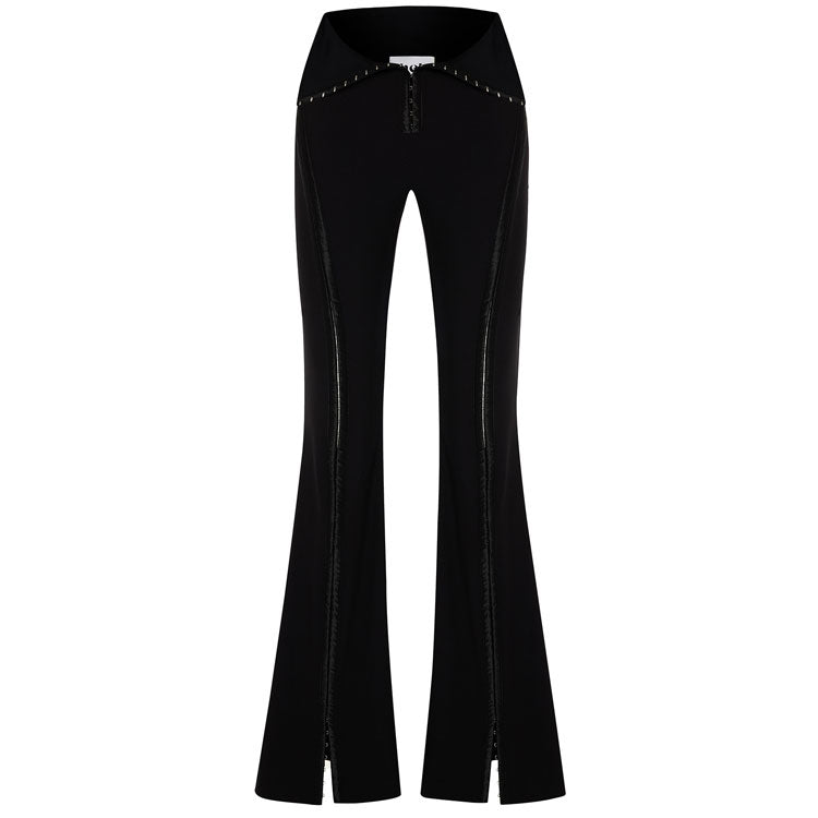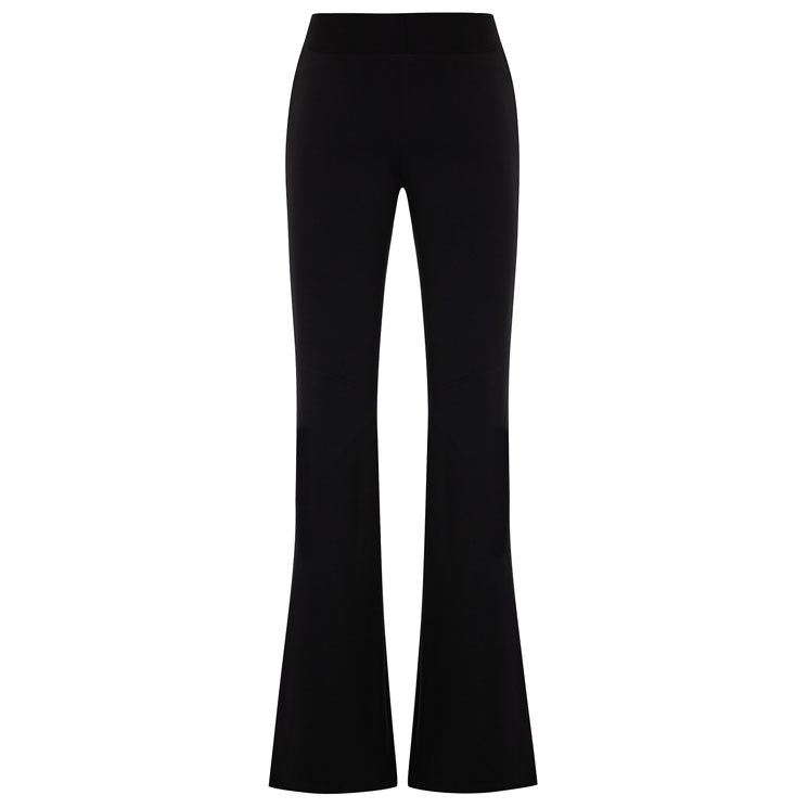 These jersey pants are cut to hug the body through the hips before breaking into a bold flared leg. Designed with a folded waistband finished in hook-and-eye closures, they bring structure to softness, while high side slits amplify movement and edge. Minimal yet striking, they’re made to carry you from daylight to after-dark with ease.