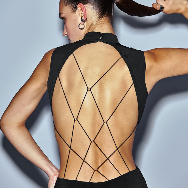 - Statement open back with criss-cross lace straps