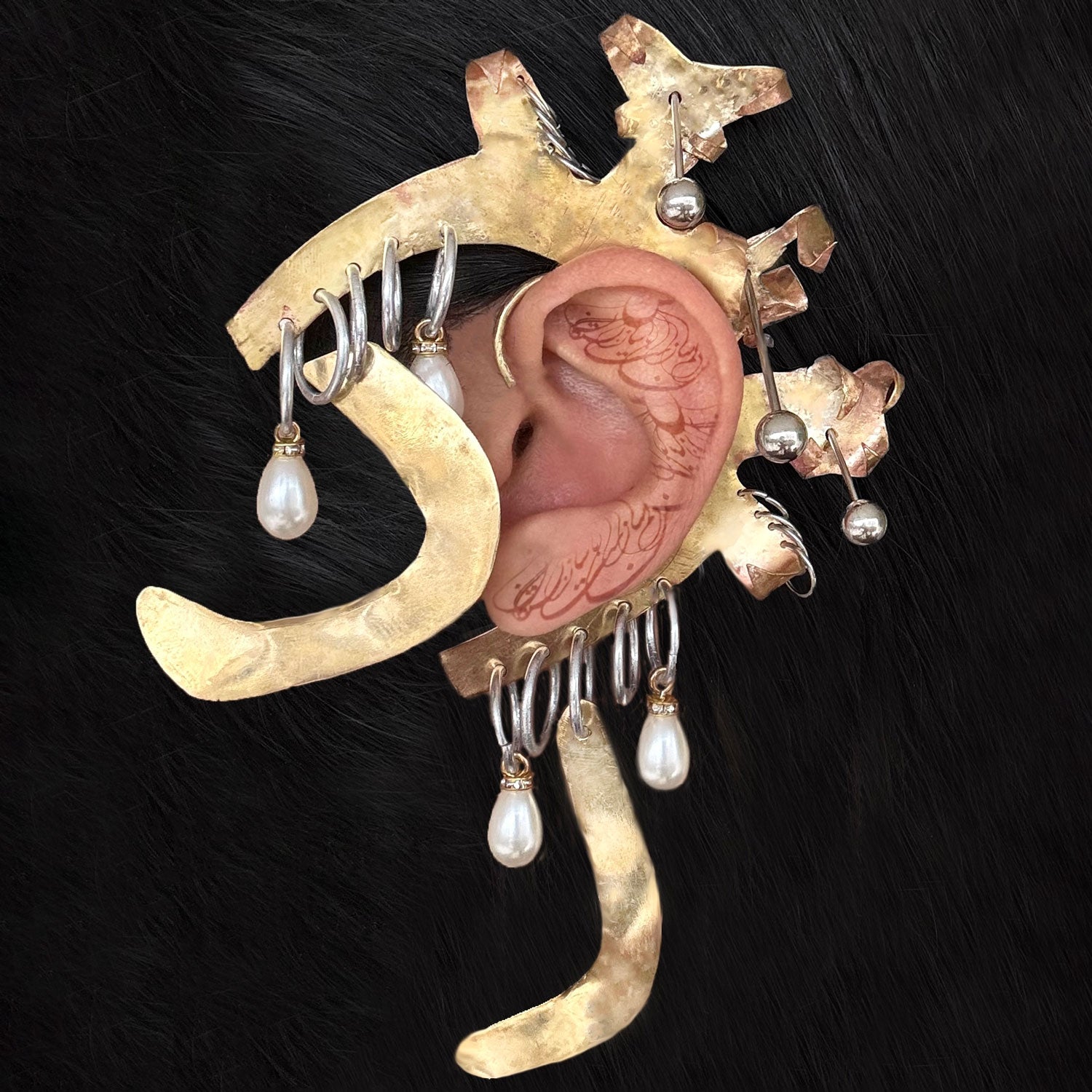 Handmade burnished brass ear cuff.
