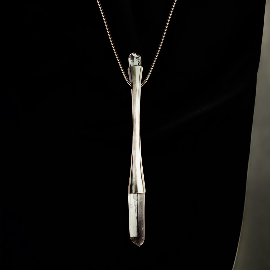 Capturing the timeless of Himalayan peaks, where glacial ice seems to suspend time itself. Each piece is handcrafted by Nepalese silversmiths, preserving the essence of ancient, frozen time from the distant iceberg. The raw texture of the silver, paired with the ethereal clarity of the Himalayan crystal, presents a serene purity, as if born from the heart of the snow-covered heights.
