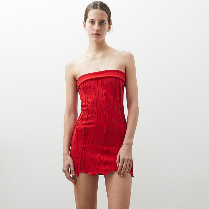 Mini cotton dress with elastic heavy ribbing on the breast for a roll up