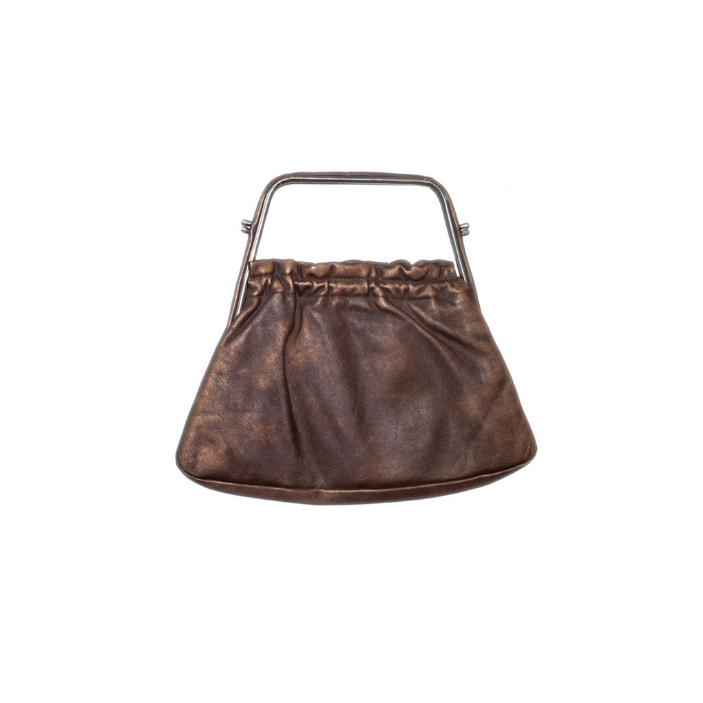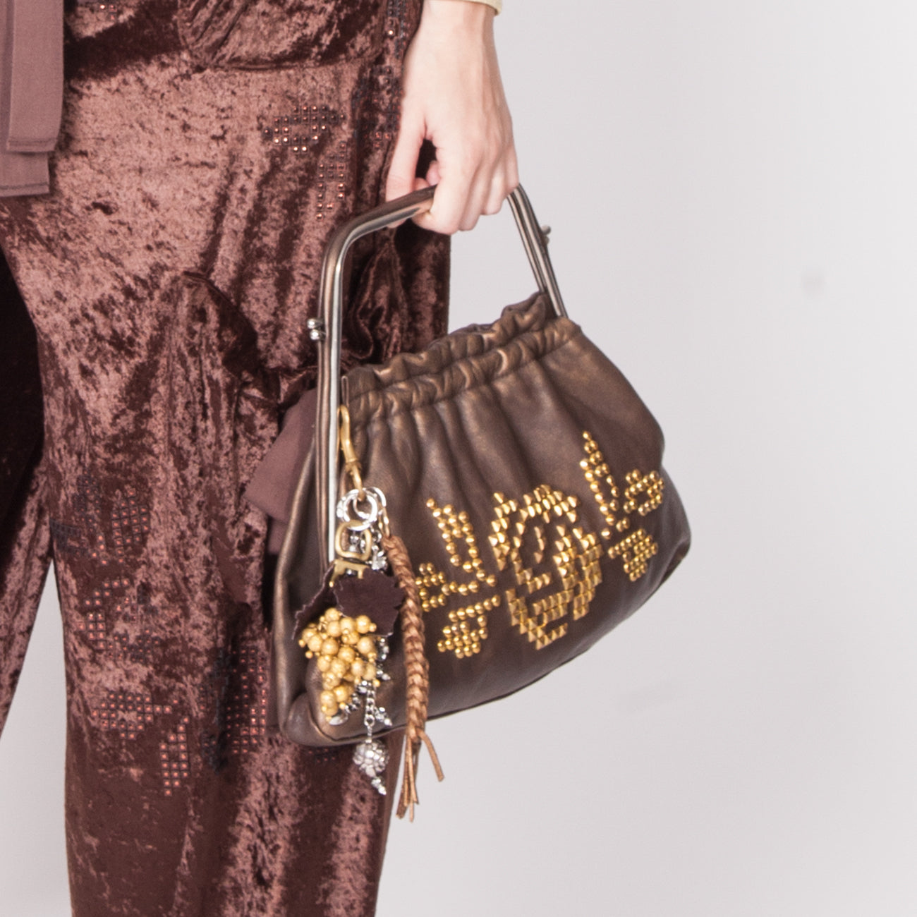 Brown gathered handbag embellished with gold pyramid studs, one size