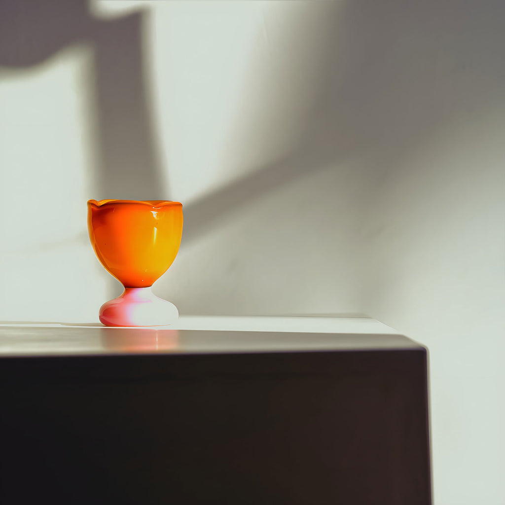 Where form flirts with function. Yolkie is hand-blown glass with a twist, swirling hues, a soft wave at the rim, and just enough attitude to turn the everyday into the unexpected. Breakfast is only the beginning. Use it as you will, egg, lemon, salt, ritual.