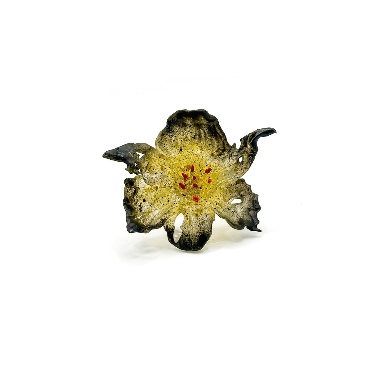 3D-printed Voided Daffodil Ring, a stunning representation of beauty, strength, and power. Inspired by the birth month flower of March, which symbolizes rebirth and new beginnings, this unique piece showcases the allure of imperfection.
